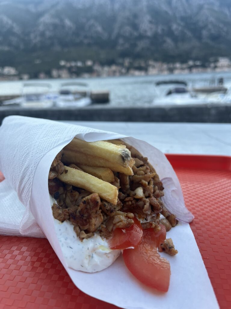 → コトル湾を眺めながら食べるギロスは最高