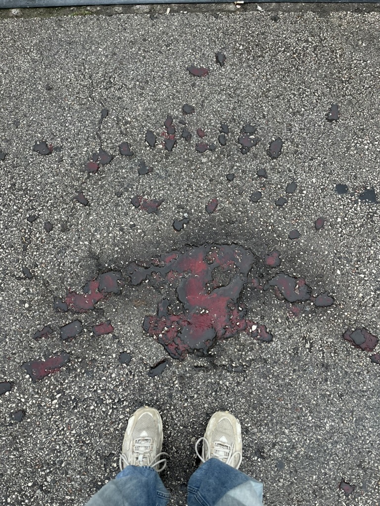 ボスニア紛争の犠牲者を追悼するための印。砲撃跡に赤い塗料を流し込んだものです。街中に点在しており、戦争の記憶を今に伝えています。