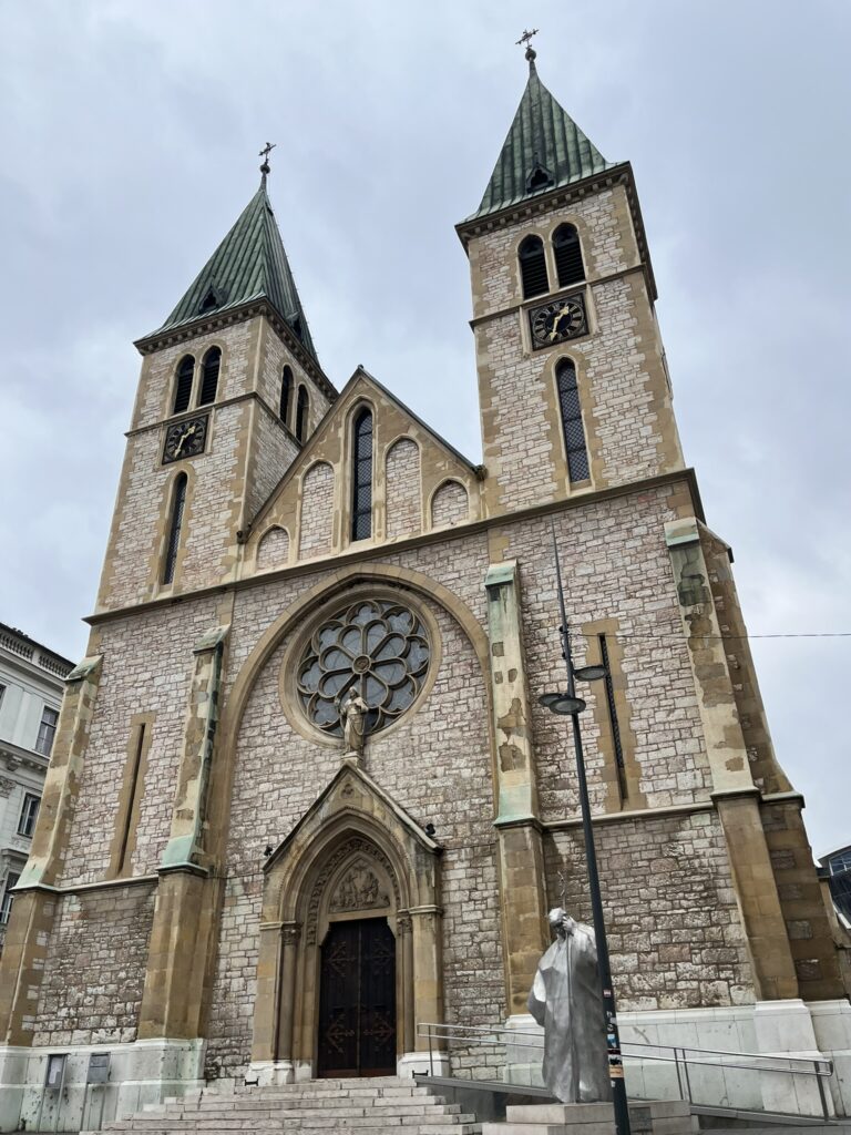 サラエボ中心部にあるカトリック大聖堂。街のシンボル的存在で、遠くからでも目立ちます。